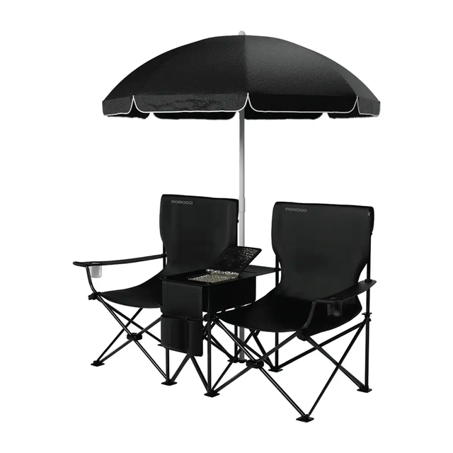 كرسي تخييم مزدوج مع مظلّة وحامل أكواب (CampShade) – كرسي خارجي قابل للطي (أسود) من Porodo