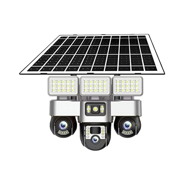 كاميرا مراقبة تعمل بالطاقة الشمسية 4G - عدسة ثلاثية بدقة 6 ميجابكسل، IP66 خارجية، رؤية ليلية، تنبيهات حركة، إضاءة شوارع مدمجة
